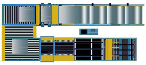 風(fēng)管生產(chǎn)6線是通風(fēng)管道加工的專用機械。該機器是由料架,自動分料器,調(diào)平機、剪板機、剪角機、壓筋機、1號送料平臺、雙聯(lián)東洋骨機、2號送料平臺、共板法蘭雙聯(lián)機、數(shù)控送料小車和個自動折彎機等機器組合而成的。電器控制部分采用全計算機PLC控制,該系統(tǒng)具有死循環(huán)反饋功能,生產(chǎn)精度和穩(wěn)定性高。所生產(chǎn)的風(fēng)管外形平整美觀,尺寸標(biāo)準(zhǔn)。裝配時工作輕松快捷,效率高;安裝后的風(fēng)管外形美觀,線條流暢,22秒出一根風(fēng)管,極大的提高了用戶的加工效率。
